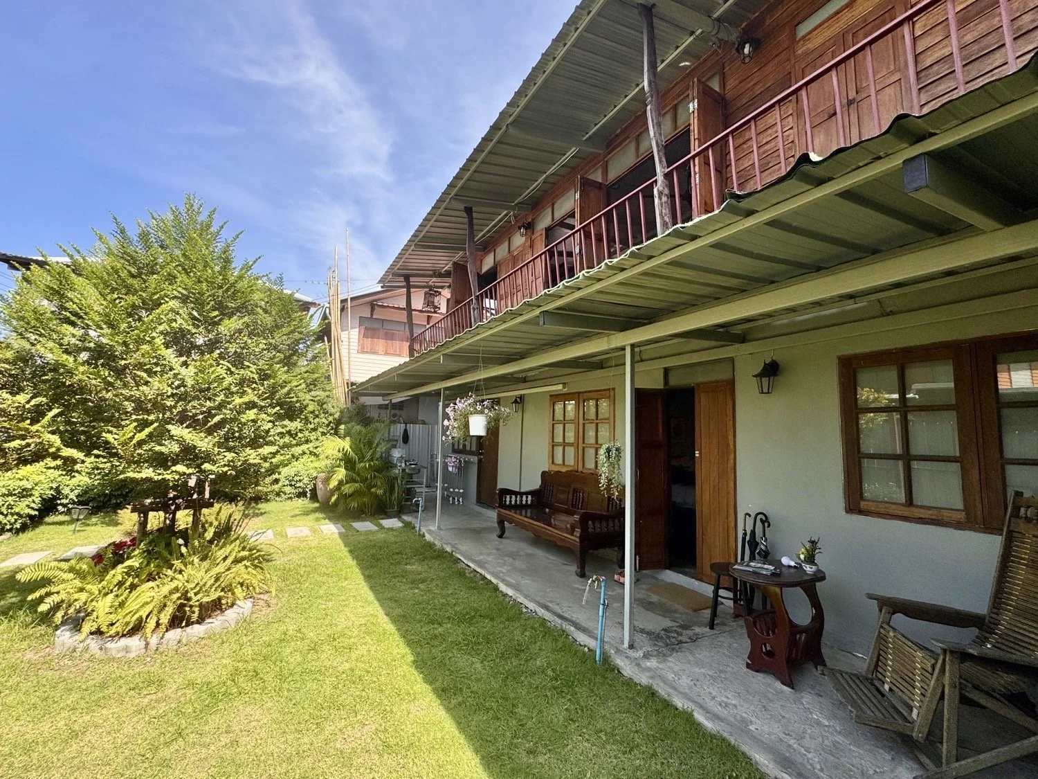 La maison qui date des années 50 environ est vraiment impeccable et très confortable, avec une chambre, un dressing et une salle d’eau au rez-de-chaussée. À l’étage, il y a un salon en mode traditionnel, avec du parquet et des coussins de sol typiques de Thaïlande (หมอนสามเหลี่ยม -mon sam liao), des plantes, un frigo et un balcon avec une vue sur le quartier pour regarder les riverains en vélo, à pied, les écureuils et les couchers de soleil. Admirer la vie locale quoi!